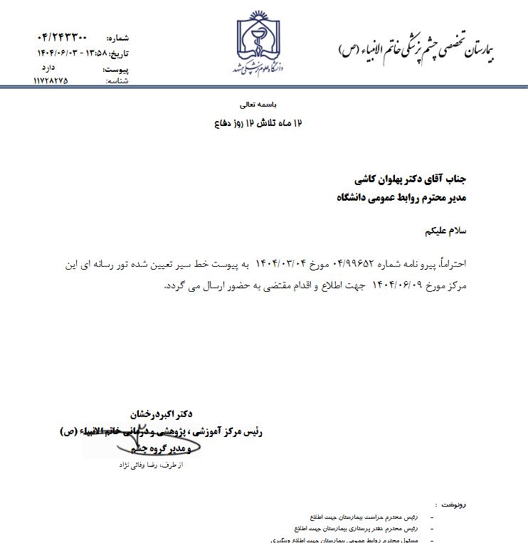 انعکاس تور رسانه ای به بیمارستان ام البنین مشهد در رسانه رخداد پرس 29 تیر 1404