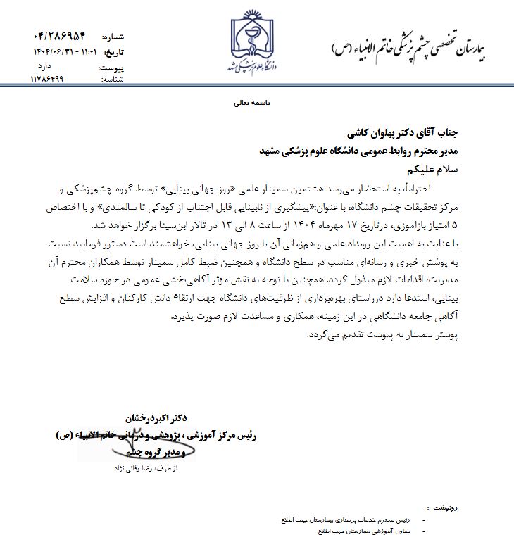 برنامه همراه با کادر درمان شبکه سلامت صداوسیمای جمهوری اسلامی ایران با حضور دکتر محمد اعتضاد رضوی ، استاد استرابیسم چشمی با عمل افتادگی پلک در بیمارستان فوق تخصصی چشم پزشکی خاتم الانبیاء (ص) مشهد