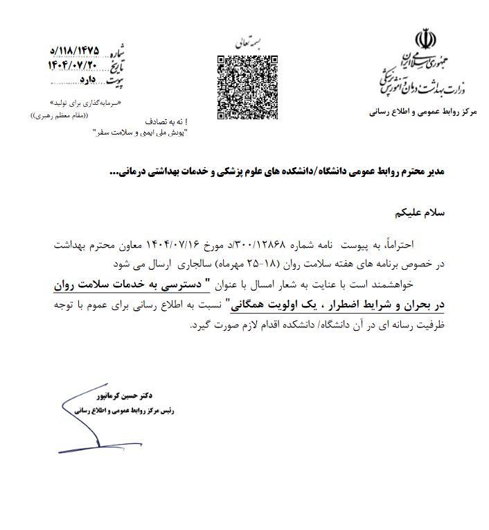 برنامه پزشک شما با حضور دکتر فرشاد شیبانی متخصص روانپزشکی بالینی با موضوع" سلامت روان در محل کار"