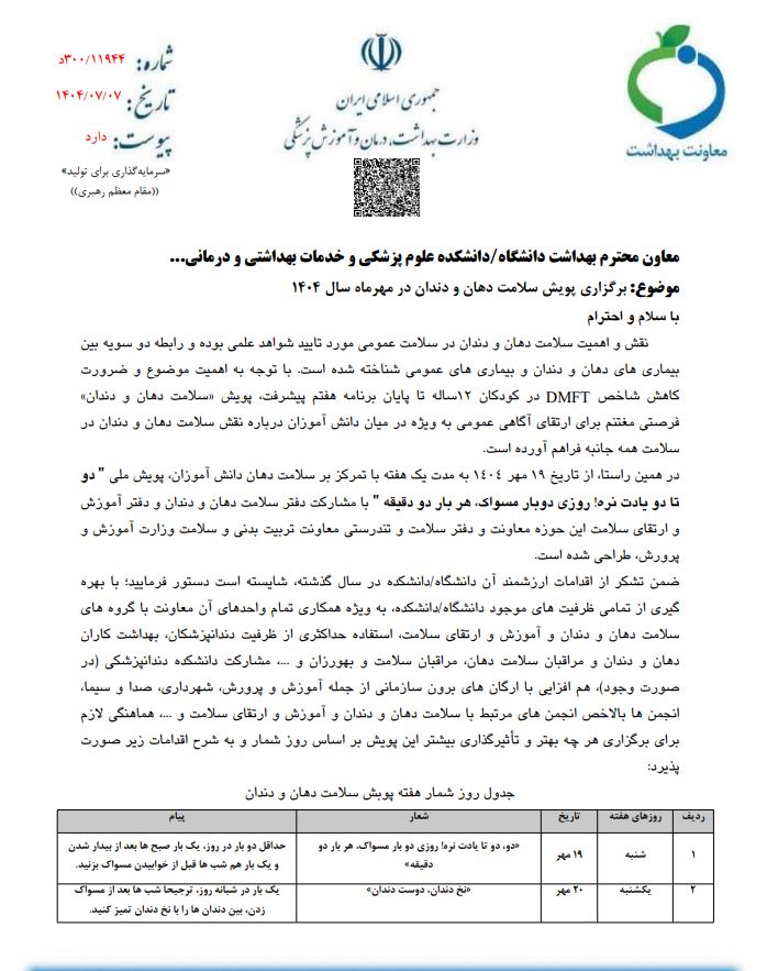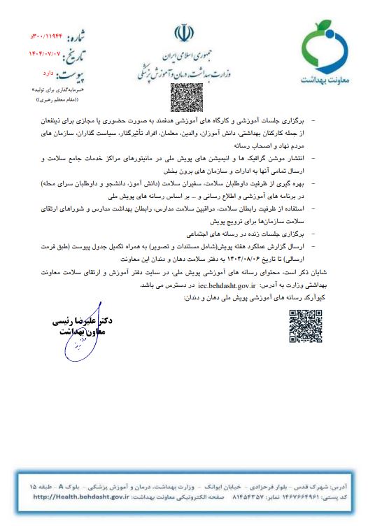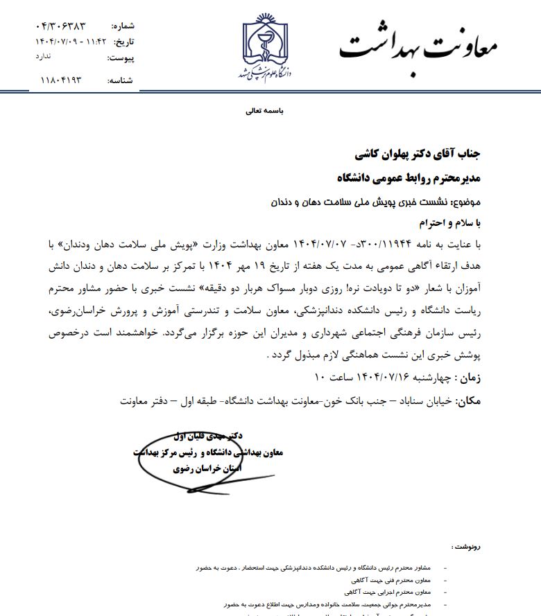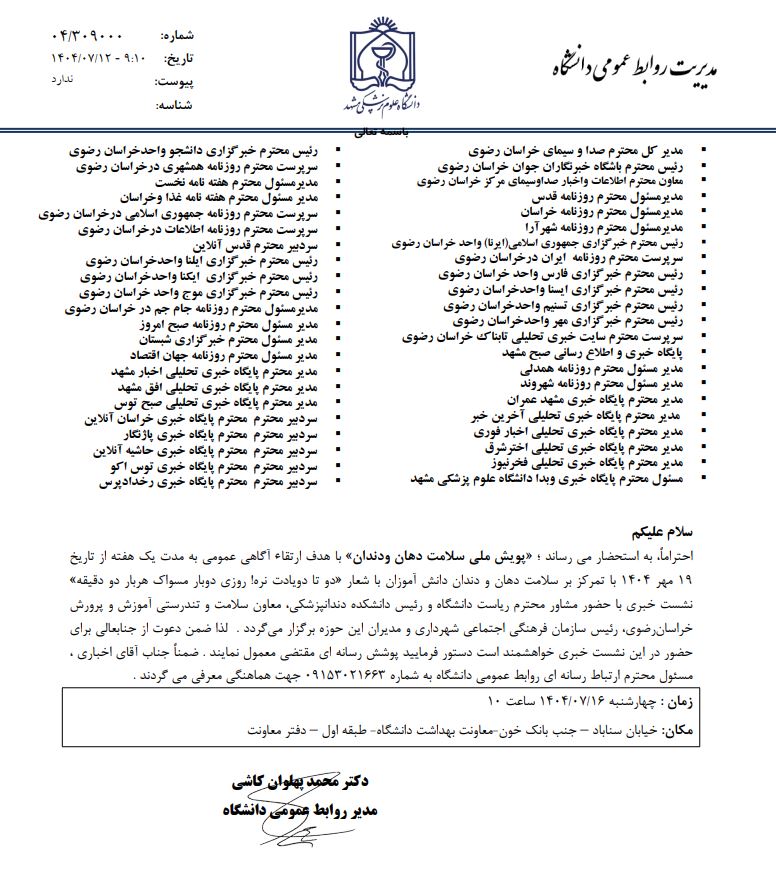 دکتر محمد پهلوان کاشی-متخصص درمان ریشه -مدیر روابط عمومی دانشگاه ع پ مشهد با موضوع پویش سلامت دهان و دندان