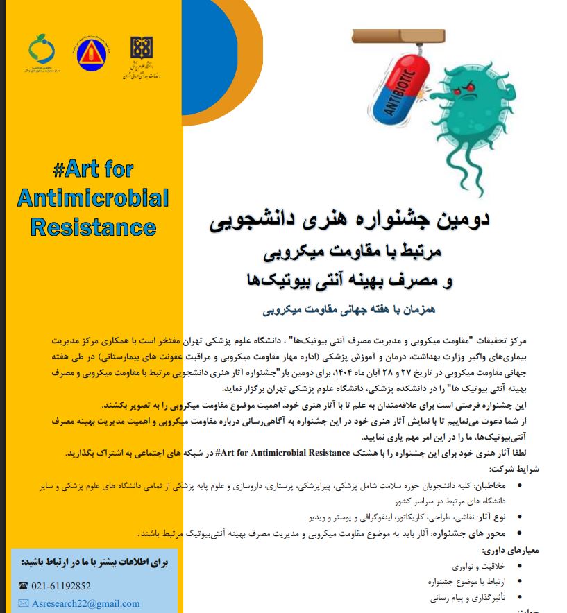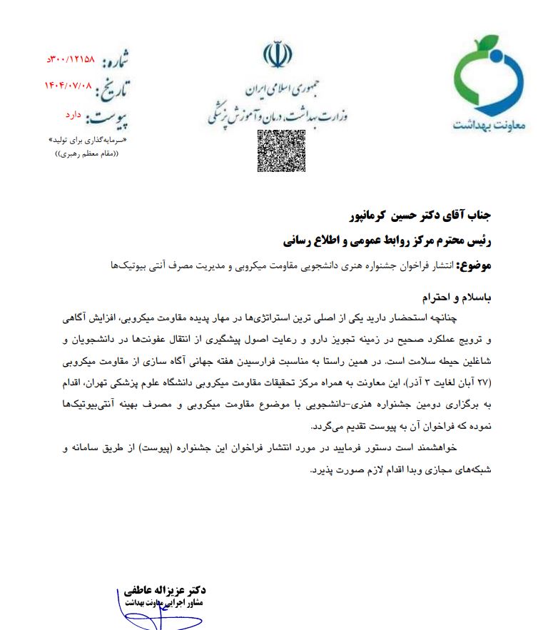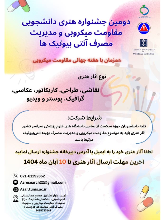 آرشیو گاه شمار سلامت 13 مهر 1404 بازدید: 27 امتیاز: ( 0 Rating ) جشنواره هنری دانشجویی مقاومت میکروبی و داروهای آنتی میکروبیال امتیاز کاربران لطفا رای دهید رای 1 رای 2 رای 3 رای 4 رای 5 انعکاس رسانه ای عکس اکرانهای شهری خبر وبدا شبکه های اجتماعی انعکاس رسانه ای عکس اکرانهای شهری خبر وبدا شبکه های اجتماعی انعکاس رسانه ای دکتر شیوا گل محمدزاده ، ﻣﺘﺨﺼﺺ فارماسیوتیکس و عضو هیئت علمی دانشگاه علوم پزشکی مشهد با موضوع مصرف منطقی فرآورده های آرایشی و بهداشتی و مراقبت از پوستبه مناسبت روزجهانی آگاه سازی داروهای آنتی میکروبیال و پیشگیری از مقاومت دارویی عکس اکرانهای شهری خبر وبدا شبکه های اجتماعی قبلی بعدی