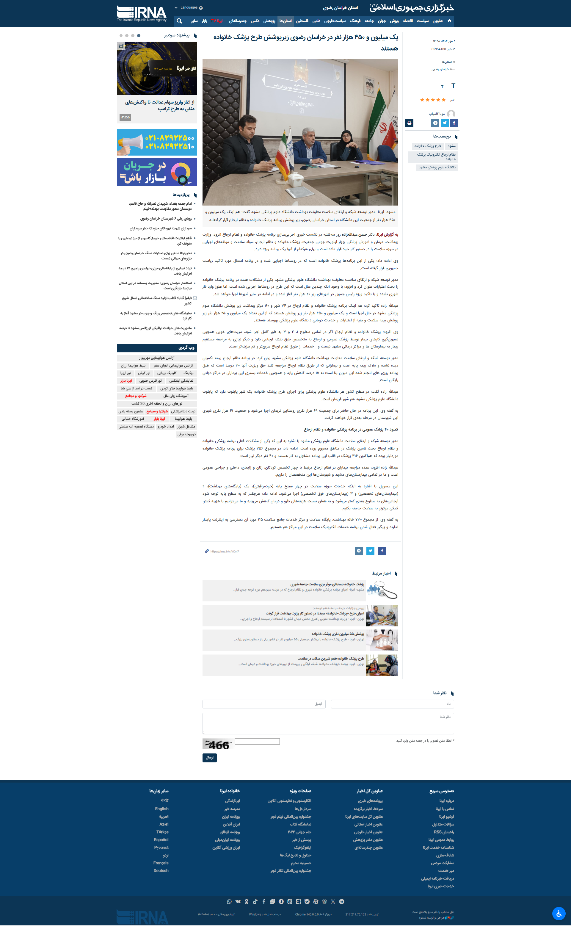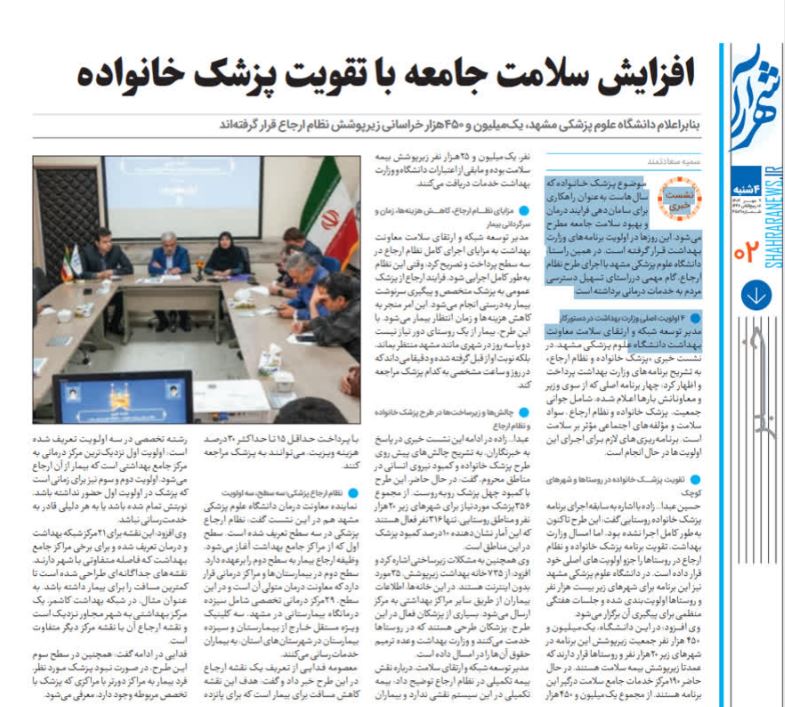 برقراری ارتباط زنده تلویزیونی با دکتر محمود ولایتی مقدم مدیر شبکه بهداشت فریمان با مو ضوع انتخاب این شهر به عنوان پایلوت پزشک خانواده در استان