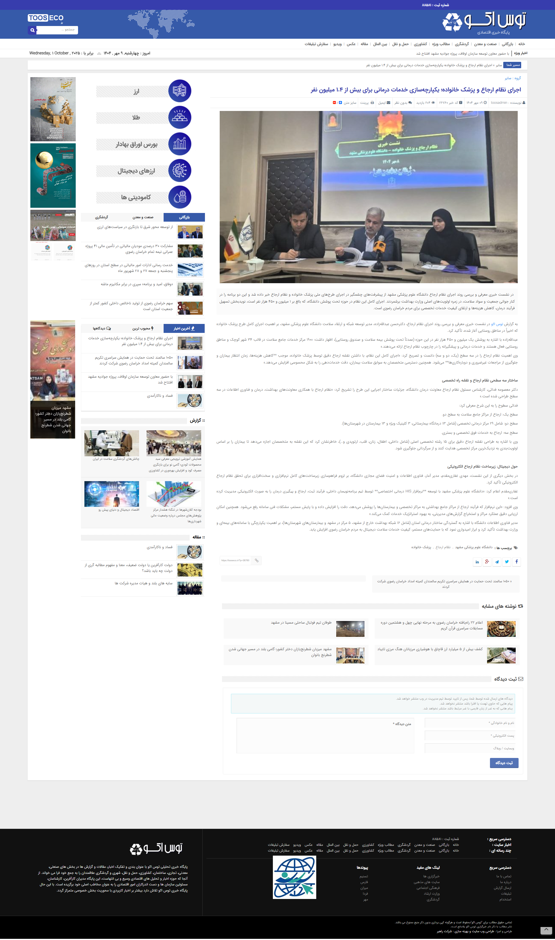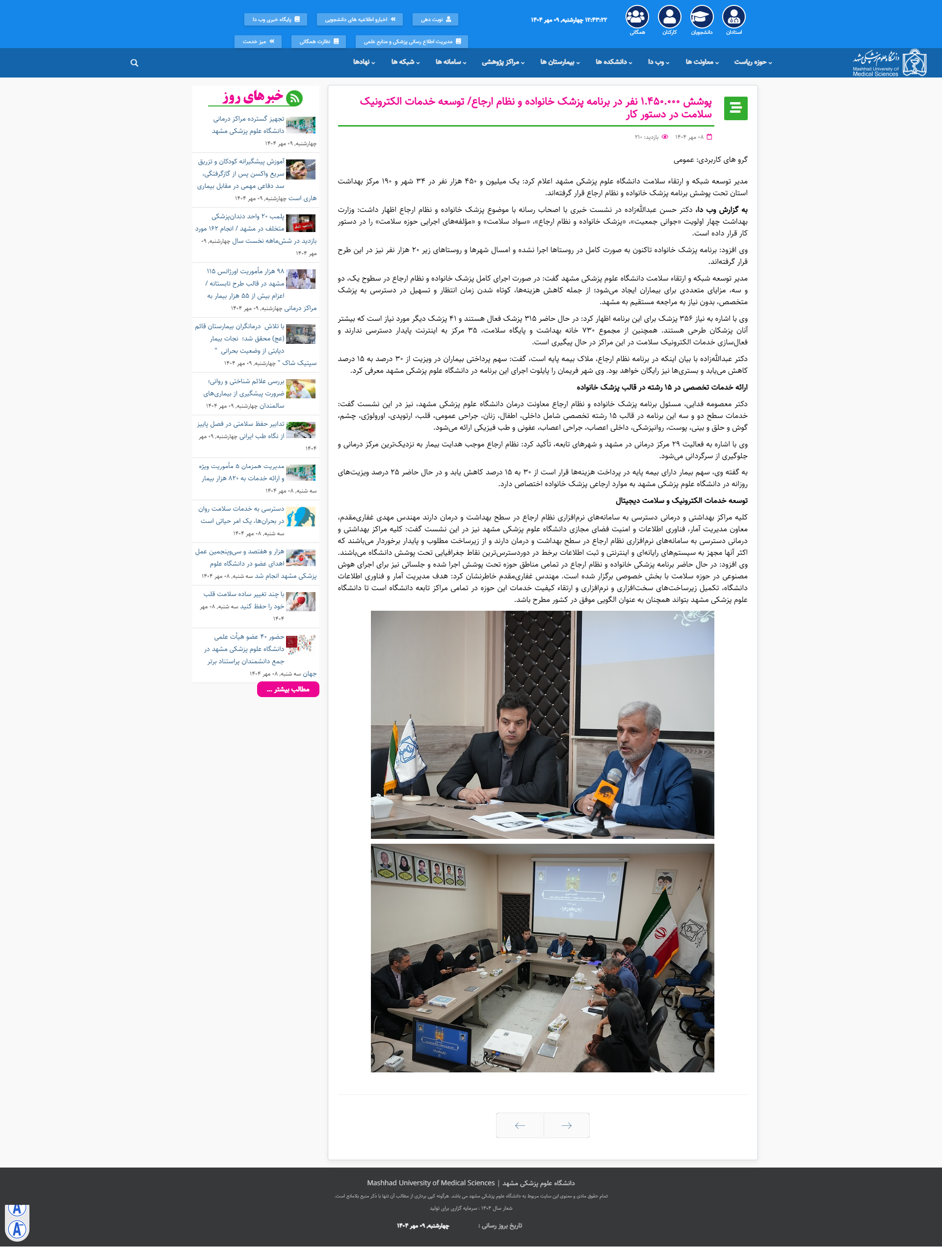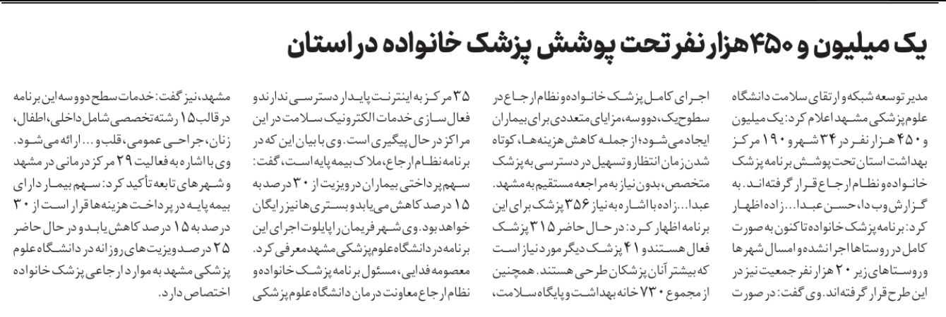 ارتباط زنده تلویزیونی با آقای دکتر حسن عبدالله زاده ، مدیر توسعه و ارتقاء شبکه دانشگاه علوم پزشکی با موضوع گزارشی از اجرای پزشک خانواده و نظام ارجاع