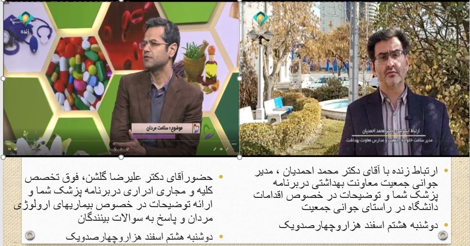 آرشیو انعکاس روزانه دانشگاه در رسانه ها پزشک شما 08 اسفند 1401 بازدید: 101 امتیاز: ( 0 Rating ) سلامت مردان امتیاز کاربران لطفا رای دهید رای 1 رای 2 رای 3 رای 4 رای 5 موضوع برنامه : سلامت مردان کارشناس برنامه : دکتر علیرضا گلشن، فوق تخصص کلیه و مجاری ادراری ارتباط زنده : آقای دکتر محمد احمدیان ، مدیر جوانی جمعیت معاونت بهداشتی کاری از : روابط عمومی دانشگاه علوم پزشکی مشهد قبلی بعدی
