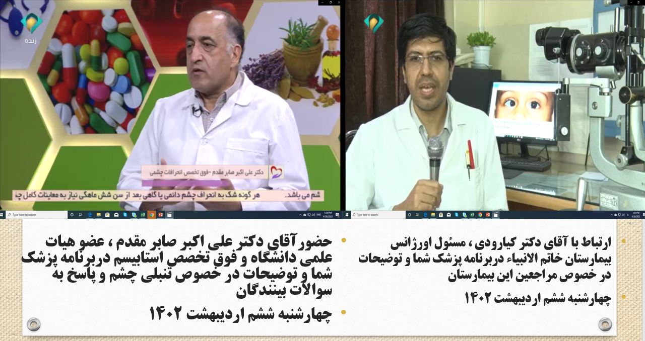 آرشیو انعکاس روزانه دانشگاه در رسانه ها پزشک شما 06 ارديبهشت 1402 بازدید: 101 امتیاز: ( 0 Rating ) تنبلی چشم امتیاز کاربران لطفا رای دهید رای 1 رای 2 رای 3 رای 4 رای 5 موضوع برنامه : تنبلی چشم کارشناس برنامه : دکتر علی اکبر صابر مقدم ، عضو هیات علمی دانشگاه و فوق تخصص استرابیسم ارتباط زنده : ارتباط با آقای دکتر کیارودی ، مسئول اورژانس بیمارستان خاتم الانبیاء کاری از : روابط عمومی دانشگاه علوم پزشکی مشهد قبلی بعدی