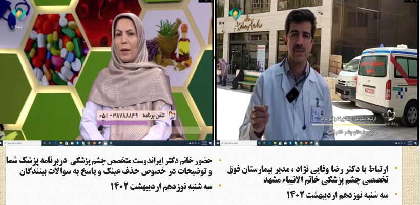 آرشیو انعکاس روزانه دانشگاه در رسانه ها پزشک شما 19 ارديبهشت 1402 بازدید: 143 امتیاز: ( 1 Rating ) حذف عینک امتیاز کاربران لطفا رای دهید رای 1 رای 2 رای 3 رای 4 رای 5 موضوع برنامه : حذف عینک کارشناس برنامه : حضورخانم دکتر ایراندوست ، متخصص چشم پزشکی ارتباط زنده : حضوردکتررضا وفایی نژاد ، مدیر بیمارستان فوق تخصصی چشم پزشکی خاتم الانبیاء مشهد کاری از : روابط عمومی دانشگاه علوم پزشکی مشهد قبلی بعدی