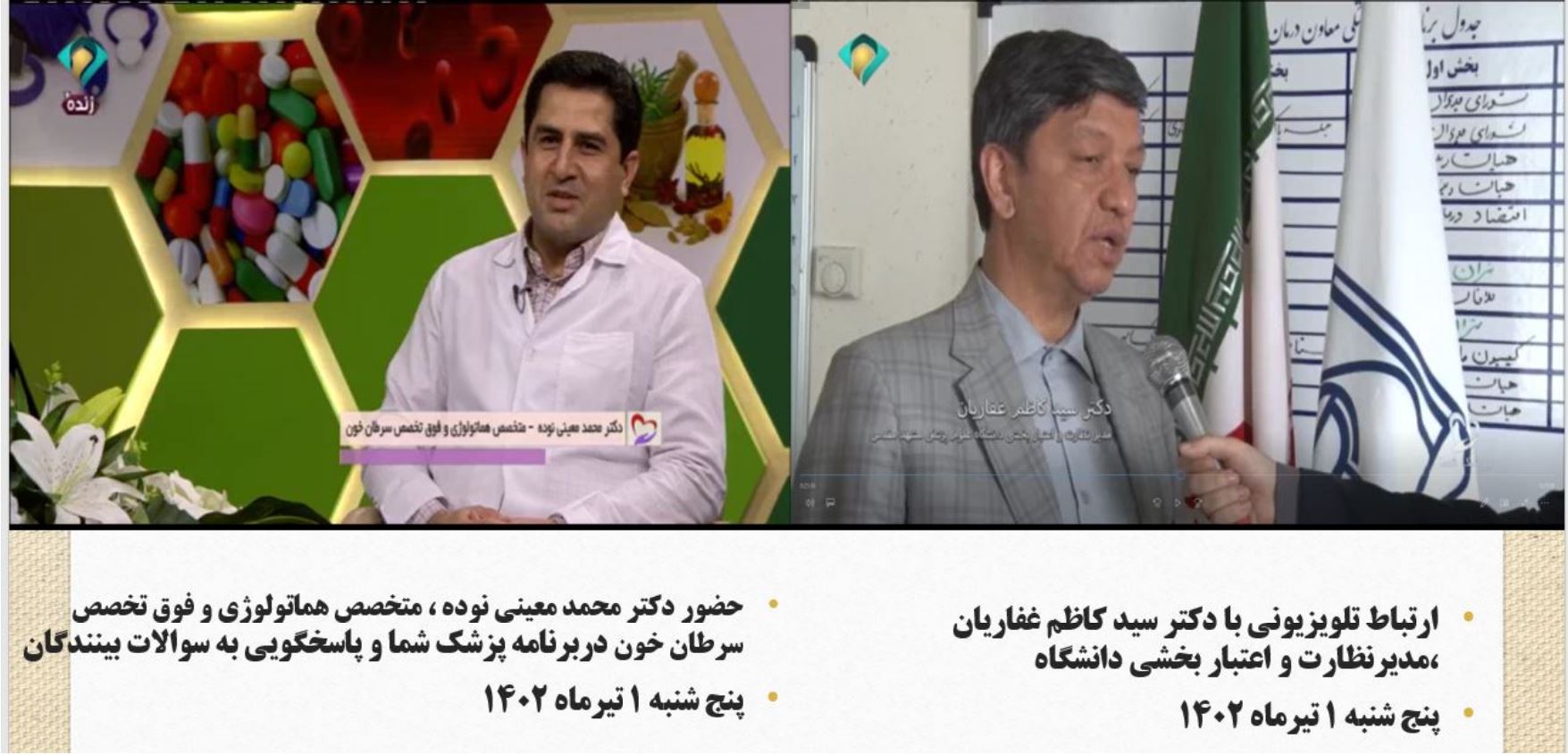 آرشیو انعکاس روزانه دانشگاه در رسانه ها پزشک شما 03 تیر 1402 بازدید: 130 امتیاز: ( 0 Rating ) آشنایی با سرطان خون امتیاز کاربران لطفا رای دهید رای 1 رای 2 رای 3 رای 4 رای 5 موضوع برنامه : آشنایی با سرطان خون کارشناس برنامه : دکتر محمد معینی نوده ، متخصص هماتولوژی و فوق تخصص سرطان خون ارتباط زنده : ارتباط تلویزیونی با دکتر سید کاظم غفاریان ،مدیرنظارت و اعتبار بخشی دانشگاه کاری از : روابط عمومی دانشگاه علوم پزشکی مشهد قبلی بعدی