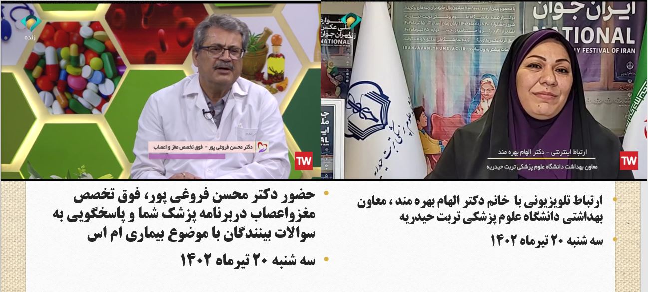آرشیو انعکاس روزانه دانشگاه در رسانه ها پزشک شما 21 تیر 1402 بازدید: 109 امتیاز: ( 0 Rating ) حضور دکتر محسن فروغی پور، فوق تخصص مغزواعصاب دربرنامه پزشک شما و پاسخگویی به سوالات بینندگان با موضوع بیماری ام اس امتیاز کاربران لطفا رای دهید رای 1 رای 2 رای 3 رای 4 رای 5 موضوع برنامه : بیماری ام اس کارشناس برنامه : حضور دکتر محسن فروغی پور، فوق تخصص مغزواعصاب دربرنامه پزشک شما و پاسخگویی به سوالات بینندگان با موضوع بیماری ام اس ارتباط زنده : ارتباط تلویزیونی با خانم دکتر الهام بهره مند ، معاون بهداشتی دانشگاه علوم پزشکی تربت حیدریه کاری از : روابط عمومی دانشگاه علوم پزشکی مشهد قبلی بعدی