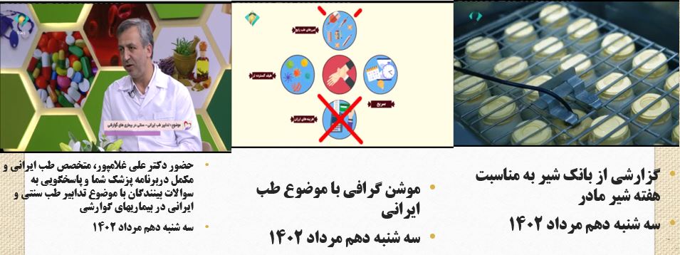 آرشیو انعکاس روزانه دانشگاه در رسانه ها پزشک شما 10 مرداد 1402 بازدید: 80 امتیاز: ( 0 Rating ) تدابیر طب سنتی و ایرانی در بیماریهای گوارشی امتیاز کاربران لطفا رای دهید رای 1 رای 2 رای 3 رای 4 رای 5 موضوع برنامه : تدابیر طب سنتی و ایرانی در بیماریهای گوارشی کارشناس برنامه : حضور دکتر علی غلامپور، متخصص طب ایرانی و مکمل ارتباط زنده : گزارشی از بانک شیر به مناسبت هفته شیر مادر کاری از : روابط عمومی دانشگاه علوم پزشکی مشهد لینک تلوبیون قبلی بعدی