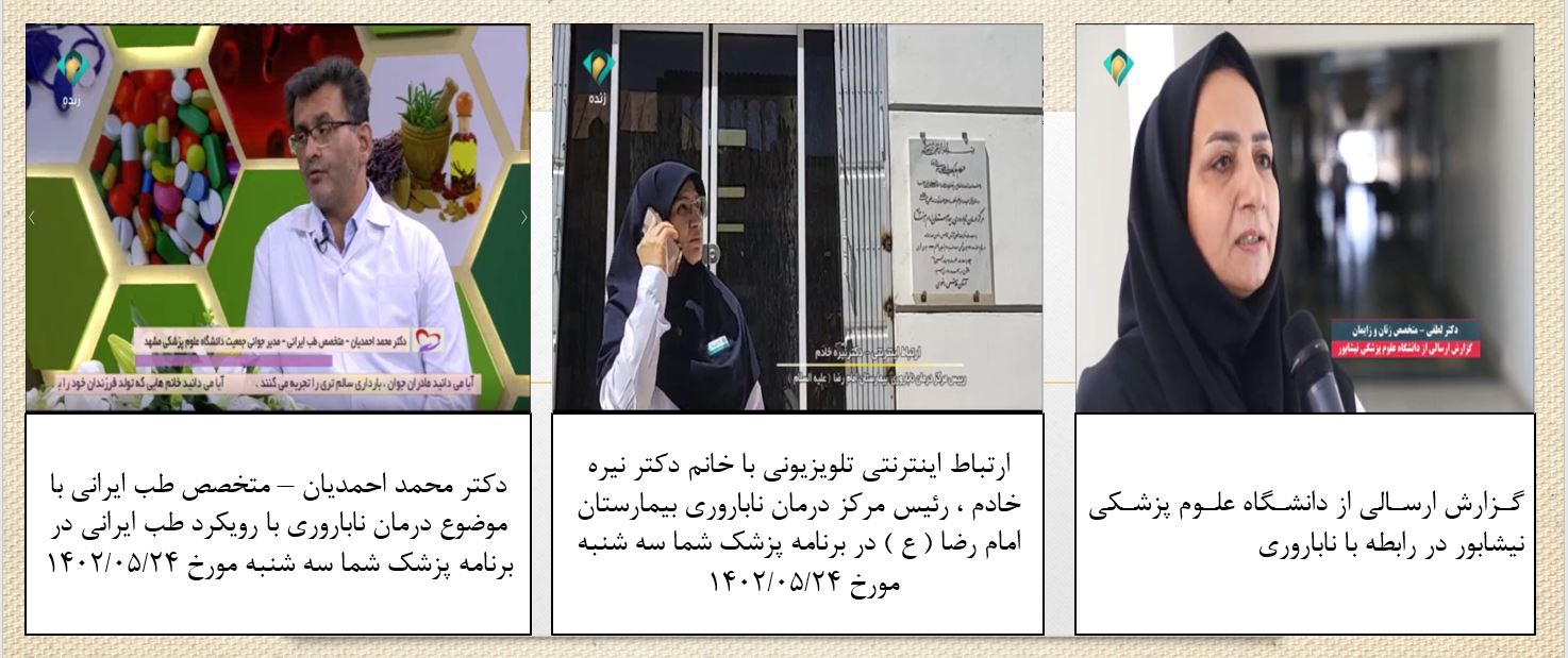 آرشیو انعکاس روزانه دانشگاه در رسانه ها پزشک شما 24 مرداد 1402 بازدید: 147 امتیاز: ( 1 Rating ) درمان ناباروری با رویکرد طب ایرانی امتیاز کاربران لطفا رای دهید رای 1 رای 2 رای 3 رای 4 رای 5 موضوع برنامه : درمان ناباروری با رویکرد طب ایرانی کارشناس برنامه : دکتر محمد احمدیان – متخصص طب ایرانی ارتباط زنده : ارتباط اینترنتی تلویزیونی با خانم دکتر نیره خادم ، رئیس مرکز درمان ناباروری بیمارستان امام رضا ( ع ) کاری از : روابط عمومی دانشگاه علوم پزشکی مشهد لینک تلوبیون قبلی بعدی