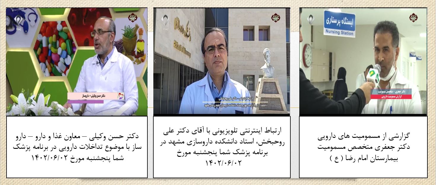 آرشیو انعکاس روزانه دانشگاه در رسانه ها پزشک شما 04 شهریور 1402 بازدید: 96 امتیاز: ( 0 Rating ) تداخلات دارویی / پزشک شما امتیاز کاربران لطفا رای دهید رای 1 رای 2 رای 3 رای 4 رای 5 موضوع برنامه : تداخلات دارویی کارشناس برنامه : دکتر حسن وکیلی – معاون غذا و دارو – دارو ساز ارتباط زنده : دکترعلی روحبخش استاد دانشکده داروسازی مشهد کاری از : روابط عمومی دانشگاه علوم پزشکی مشهد لینک تلوبیون قبلی بعدی