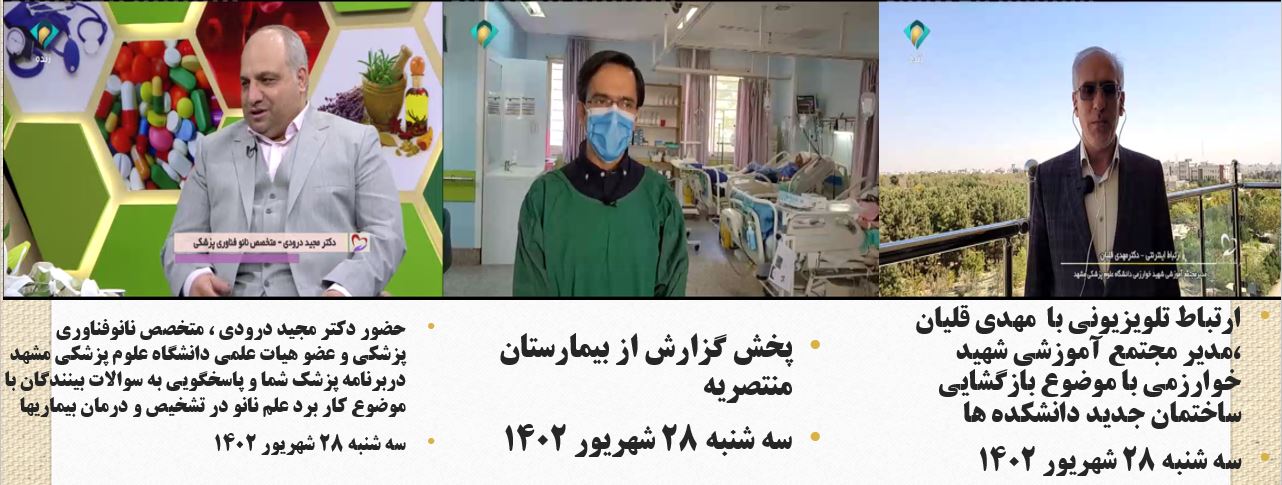 آرشیو انعکاس روزانه دانشگاه در رسانه ها پزشک شما 28 شهریور 1402 بازدید: 93 امتیاز: ( 0 Rating ) کار برد علم نانو در تشخیص و درمان بیماریها امتیاز کاربران لطفا رای دهید رای 1 رای 2 رای 3 رای 4 رای 5 موضوع برنامه : کاربرد علم نانو در تشخیص و درمان بیماریها کارشناس برنامه : دکتر مجید درودی ، متخصص نانوفناوری پزشکی و عضو هیات علمی دانشگاه علوم پزشکی مشهد ارتباط زنده : دکترمهدی قلیان ،مدیر مجتمع آموزشی شهید خوارزمی کاری از : روابط عمومی دانشگاه علوم پزشکی مشهد لینک تلوبیون قبلی بعدی