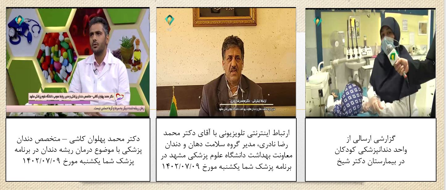 آرشیو انعکاس روزانه دانشگاه در رسانه ها پزشک شما 10 مهر 1402 بازدید: 86 امتیاز: ( 0 Rating ) برنامه پزشک شما با موضوع درمان ریشه دندان / تلویزیون خراسان رضوی امتیاز کاربران لطفا رای دهید رای 1 رای 2 رای 3 رای 4 رای 5 موضوع برنامه : برنامه پزشک شما با موضوع درمان ریشه دندان / تلویزیون خراسان رضوی کارشناس برنامه : دکتر محمد پهلوان کاشی – متخصص دندان پزشکی و مدیر روابط عمومی دانشگاه علوم پزشکی مشهد ارتباط زنده : دکتر محمد رضا نادری، مدیر گروه سلامت دهان و دندان معاونت بهداشت دانشگاه علوم پزشکی مشهد کاری از : روابط عمومی دانشگاه علوم پزشکی مشهد لینک تلوبیون قبلی بعدی