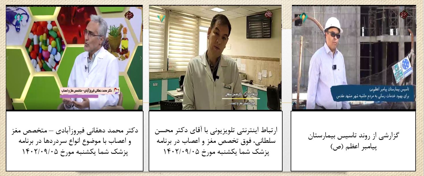 آرشیو انعکاس روزانه دانشگاه در رسانه ها پزشک شما 05 آذر 1402 بازدید: 127 امتیاز: ( 0 Rating ) برنامه پزشک شما با موضوع انواع سردردها / شبکه خراسان رضوی امتیاز کاربران لطفا رای دهید رای 1 رای 2 رای 3 رای 4 رای 5 موضوع برنامه : برنامه پزشک شما با موضوع انواع سردردها / شبکه خراسان رضوی کارشناس برنامه : دکتر محمد دهقانی فیروزآبادی – متخصص مغز و اعصاب ارتباط زنده : دکتر محسن سلطانی، فوق تخصص مغز و اعصاب کاری از : روابط عمومی دانشگاه علوم پزشکی مشهد لینک تلوبیون قبلی بعدی