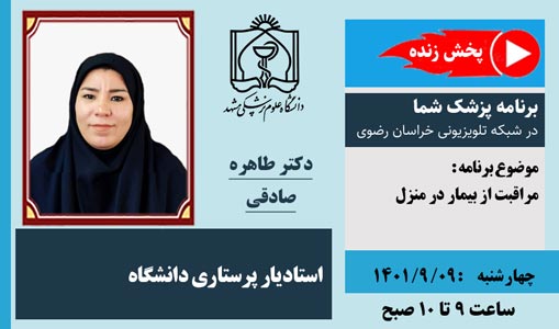 کارشناس برنامه :  دکتر طاهره صادقی ، دکترای پرستاری و عضو هیات علمی  دانشکده پرستاری و مامایی دانشگاه علوم پزشکی مشهد
