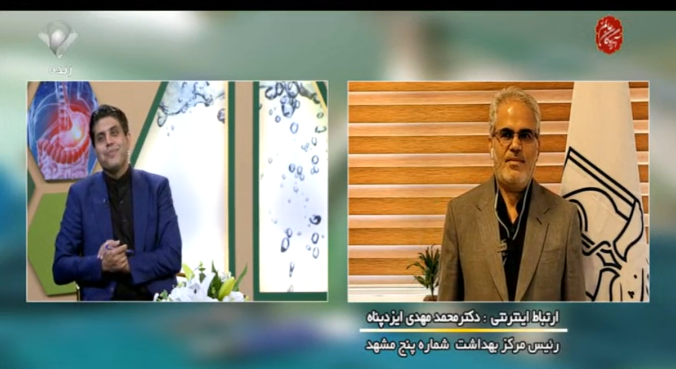 ارتباط زنده تلویزیونی با دکتر ارتباط زنده تلویزیونی با آقای دکتر محمدمهدی ایزد پناه ، رئیس مرکز بهداشت شماره پنج مشهد با موضوع : اقدامات این مرکز در ورودی فرودگاه مشهد