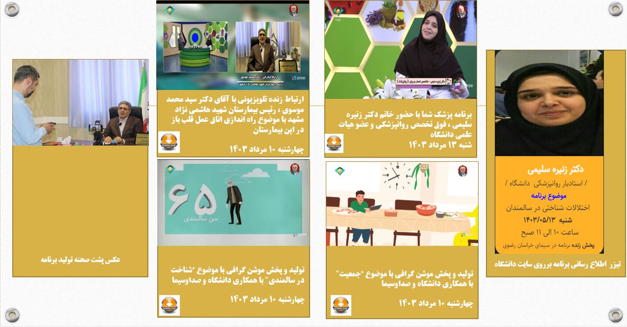 روابط عمومی دانشگاه علوم پزشکی مشهد با همکاری صداوسیمای مرکز خراسان رضوی