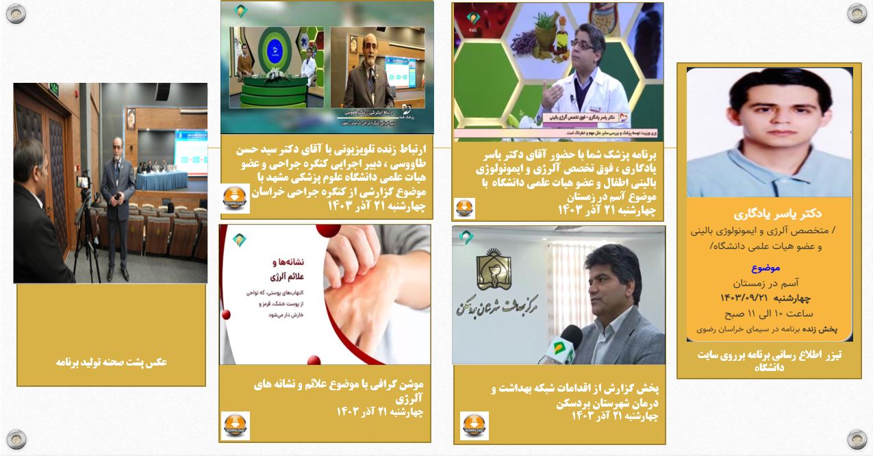 روابط عمومی دانشگاه علوم پزشکی مشهد با همکاری صداوسیمای مرکز خراسان رضوی