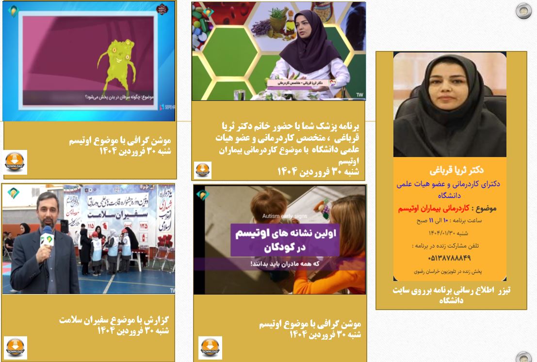 آرشیو انعکاس روزانه دانشگاه در رسانه ها پزشک شما 31 فروردين 1404 بازدید: 98 امتیاز: ( 0 Rating ) برنامه پزشک شما با موضوع: نقش کاردرمانی در اختلالات اوتیسم -میهمان برنامه خانم دکتر ثریا قره باغی متخصص کاردرمانی امتیاز کاربران لطفا رای دهید رای 1 رای 2 رای 3 رای 4 رای 5 دکتر ثریا قره باغی -متخصص کاردرمانی- با موضوع : نقش کاردرمانی در اختلالات اوتیسم تماشای برنامه در تلوبیون موضوع برنامه : برنامه پزشک شما با موضوع نقش کاردرمانی دراختلالات اوتیسم -دکتر ثریا قره باغی متخصص کاردرمانی ارتباط تلویزیونی موشن گرافی 1 موشن گرافی با موضوع"نشانه های اوتیسم" موشن گرافی 2 گزارش گزارش میدانی از دومین دوره جشنواره رقابت های علمی و مهارتی سفیران سلامت -دانش آموزان-محمد رضا شاره کارشناس آموزش اورژانس 115مشهد کاری از : روابط عمومی دانشگاه علوم پزشکی مشهد با همکاری صداوسیمای مرکز خراسان رضوی موشن گرافی با موضوع " اولین نشانه های کودکان اتیسم" -دکتر ثریا قره باغی گزارش میدانی از دومین دوره جشنواره رقابت های علمی و مهارتی سفیران سلامت -دانش آموزان-محمد رضا شاره کارشناس آموزش اورژانس 115مشهد A قبلی بعدی