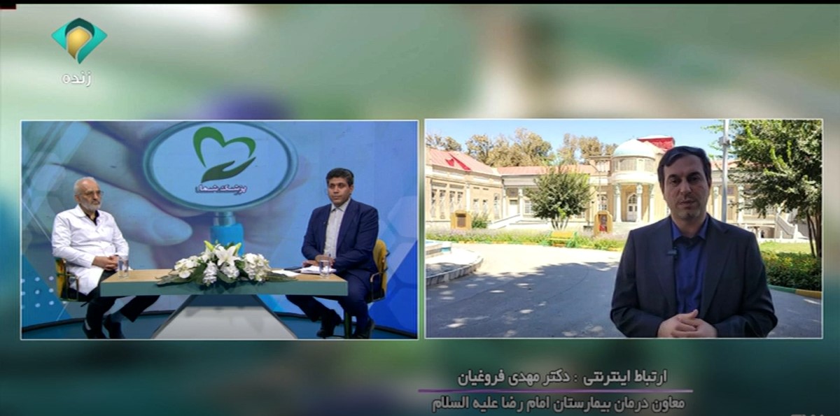 آرشیو انعکاس روزانه دانشگاه در رسانه ها پزشک شما 14 مرداد 1404 بازدید: 42 امتیاز: ( 0 Rating ) برنامه پزشک شما باموضوع"مراقبت های لازم برای حفظ سلامت گوارش در گرما و پیاده روی اربعین-میهمان برنامه :دکتر عباس اسماعیل زاده فوق تخصص گوارش امتیاز کاربران لطفا رای دهید رای 1 رای 2 رای 3 رای 4 رای 5 دکتر عباس اسماعیل زاده فوق تخصص گوارش-مراقبت های لازم برای حفظ سلامت گوارش-13 مرداد1404 موضوع برنامه : دکتر عباس اسماعیل زاده فوق تخصص گوارش-مراقبت های لازم برای حفظ سلامت گوارش-13 مرداد1404 ارتباط تلویزیونی ارتباط زنده تلویزیونی با دکتر فروغیان معاون درمان بیمارستان امام رضا (ع) مشهد-13 مرداد1404 موشن گرافی 1 گزارش موشن گرافی 2 کاری از : ارتباط زنده تلویزیونی با دکتر فروغیان معاون درمان بیمارستان امام رضا (ع) مشهد-13 مرداد1404 موشن گرافی با موضوع "چگونه متوجه بشویم کسی گرمازده شده است" موشن گرافی با موضوع"رعایت نکات در پیشگیری از گرمازدگی-پیاده روی اربعین" A قبلی بعدی