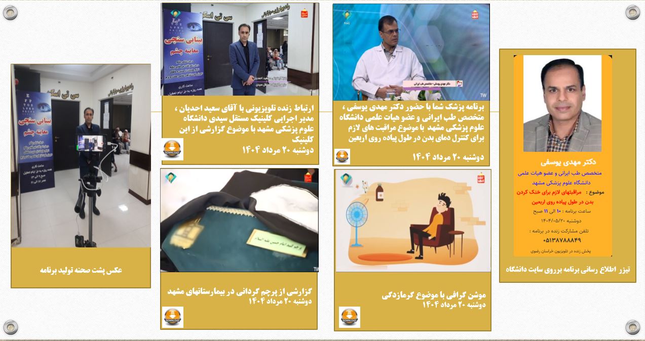 برنامه پزشک شما -میهمان برنامه - دکتر مهدی یوسفی متخصص طب ایرانی -با موضوع:گرمازدگی در پیاده روی از دیدگاه طب ایرانی