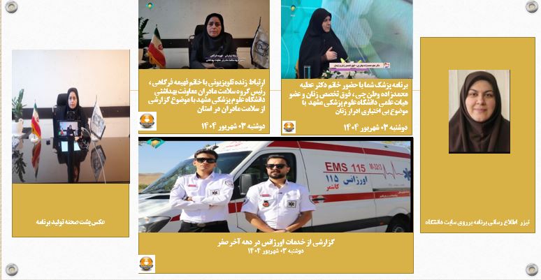آرشیو انعکاس روزانه دانشگاه در رسانه ها پزشک شما 04 شهریور 1404 بازدید: 33 امتیاز: ( 0 Rating ) برنامه پزشک شما با موضوع : بی اختیاری ادرار در زنان -میهمان برنامه خانم دکتر عطیه محمد زاده فوق تخصص زنان-عضو هیئت علمی دانشگاه امتیاز کاربران لطفا رای دهید رای 1 رای 2 رای 3 رای 4 رای 5 برنامه پزشک شما با موضوع بی اختیاری ادرار در خانم ها -دکتر عطیه محمد زاده فوق تخصص زنان موضوع برنامه : برنامه پزشک شما با موضوع بی اختیاری ادرار در خانم ها -دکتر عطیه محمد زاده فوق تخصص زنان ارتباط تلویزیونی ارتباط زنده تلویزیونی با رئیس گروه سلامت مادران معاونت بهداشت دانشگاه مشهد-1شهریور گزارش تلویزیونی کلیپ استقرار نیروهای 115 کشور در مشهد -دهه پایانی صفر -ستاد خدمات سفر مشهد موشن گرافی 2 موشن گرافی 3 کاری از : ارتباط زنده تلویزیونی با رئیس گروه سلامت مادران معاونت بهداشت دانشگاه مشهد کلیپ استقرار نیروهای 115 کشور در مشهد -دهه پایانی صفر -ستاد خدمات سفر مشهد A قبلی بعدی