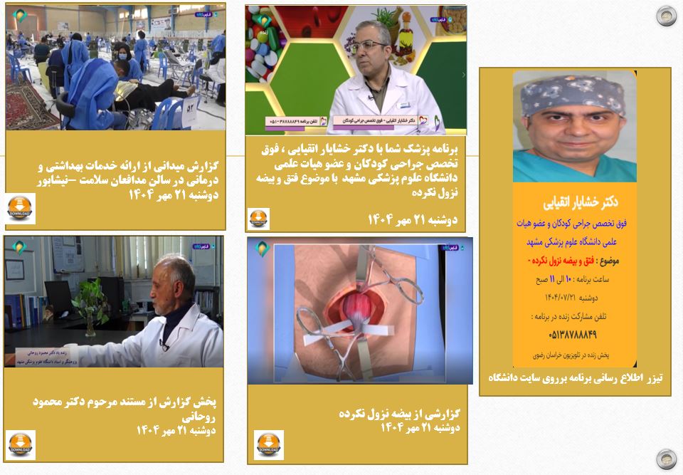 آرشیو انعکاس روزانه دانشگاه در رسانه ها پزشک شما 21 مهر 1404 بازدید: 85 امتیاز: ( 0 Rating ) دکتر خشایار اتقیایی فوق تخصص جراحی کودکان -موضوع ؛ فتق و بیضه نزول نکرده کودکان امتیاز کاربران لطفا رای دهید رای 1 رای 2 رای 3 رای 4 رای 5 پزشک شما پزشک شما پزشک شما متن شما ... دکتر خشایار اتقیایی فوق تخصص جراحی کودکان -موضوع برنامه: فتق و بیضه نزول نکرده- موضوع برنامه : دکتر خشایار اتقیایی فوق تخصص جراحی کودکان -موضوع برنامه: فتق و بیضه نزول نکرده ارتباط تلویزیونی مستند دکتر محمود روحانی استاد و پژوهشگر دانشگاه علوم پزشکی مشهد گزارش تلویزیونی گزارش میدانی از ارائه خدمات بهداشتی و درمانی در سالن مدافعان سلامت -نیشابور- موشن گرافی 2 موشن گرافی فتق و بیضه نزول نکرده موشن گرافی 3 کاری از : مستند دکتر محمود روحانی استاد و پژوهشگر دانشگاه علوم پزشکی مشهد موشن گرافی فتق و بیضه نزول نکرده گزارش میدانی از ارائه خدمات بهداشتی و درمانی در سالن مدافعان سلامت -نیشابور- قبلی بعدی