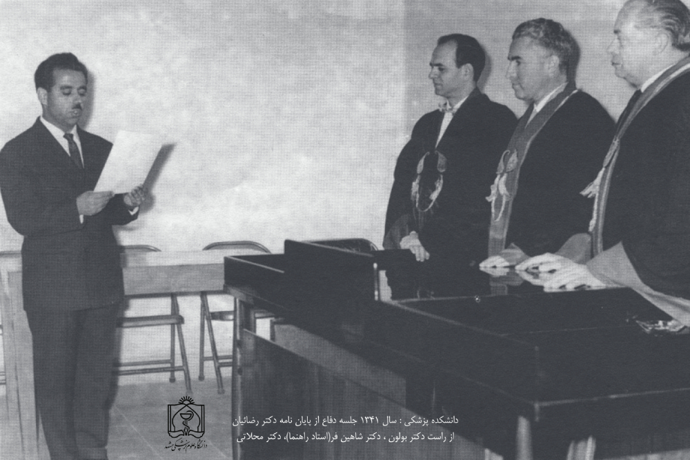دانشکده پزشکی: سال 1341 جلسه دفاع از پایان نامه دکتر رضائیان