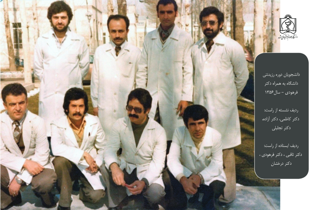 دانشجویان دوره رزیدنتی دانشگاه به همراه دکتر فرهودی - سال 1356