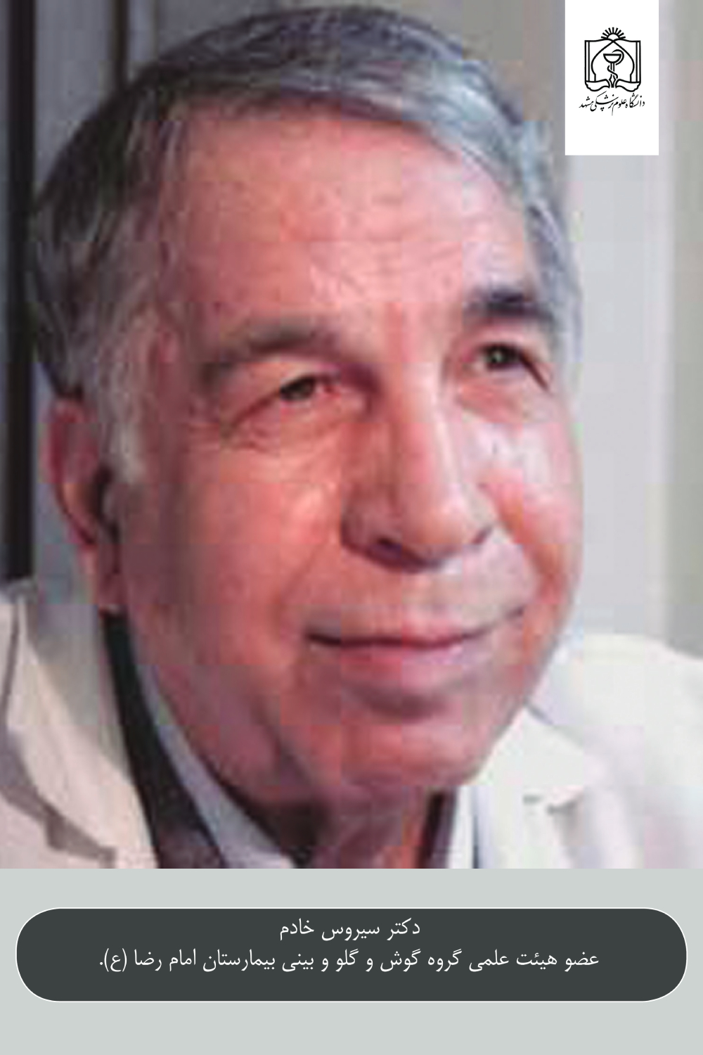 دکتر سیروس خادم عضو هیات علمی گروه گوش و حلق و بینی بیمارستان امام رضا (ع)
